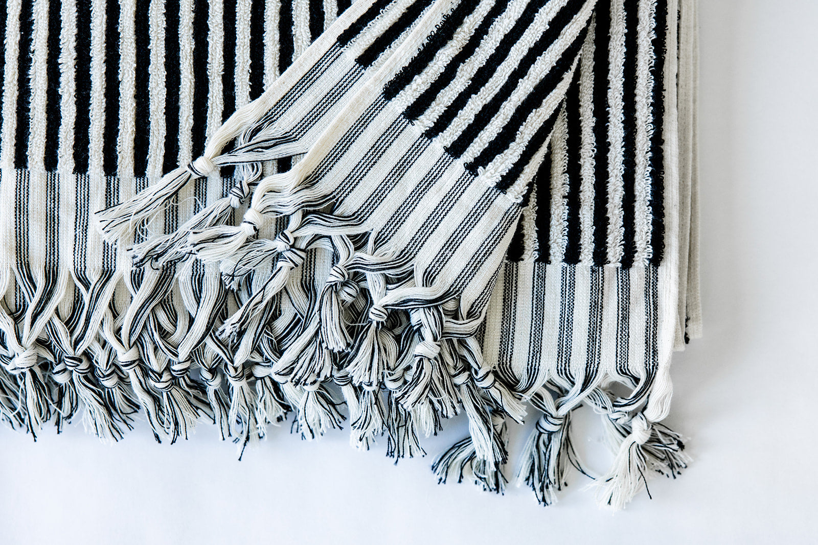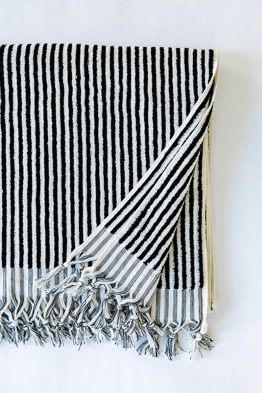 Get our bestselling Terrycloth Black and White Pom Pom Bathrobe with its matching towel and hand towel by adding this saver bundle to your cart!